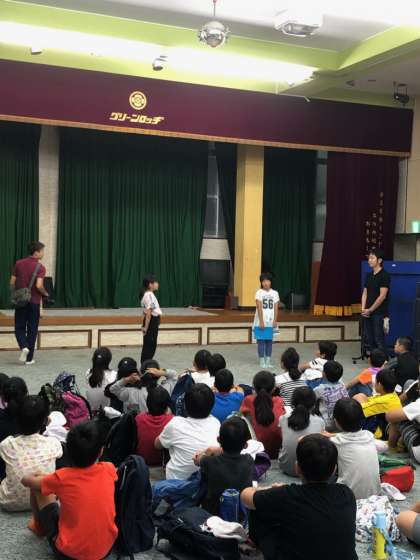 5年生を乗せたバスは、ほぼ予定通りに到着し、3日間お世話になりますグリーンロッジで開舎式をしました。
