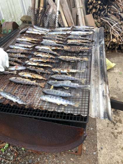 捕まえた魚を焼いていただき、美味しくいただきました。