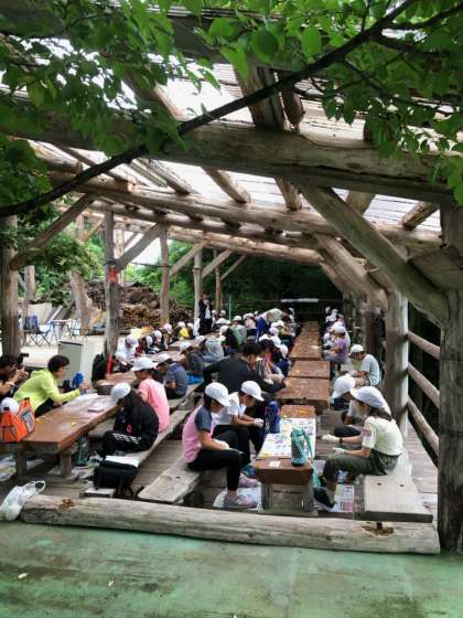 その前後に、3日間使用する箸を作りました。竹をカッターナイフで削っている姿は真剣で集中して取り組み、オリジナリティのある箸が完成しました。