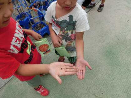 1年生が1学期から育てたアサガオもすっかり枯れてしまいました。花が咲いた後には種がしっかりできています。アサガオの種を集めて紙で作った袋に入れて大切にしまっておきます。夏休みの思い出と一緒に大切にしたいものです。できれば来年もその種できれいな花を咲かせてほしいです。きれいな花をありがとう。