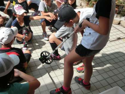 3年生が算数で1キロメートルを学習しています。1kmといわれてもどれぐらいの距離なのかなかなか実感できません。そこで測定器を使って学校から1kmを歩いていきました。ゆっくり歩いて約15分です。なんと神崎川から公園のほうに戻ってきたそうです。直線距離にすると新大阪駅の手前あたりまでになるのでしょうか。大体これぐらいの長さが1kmとわかっていればいろいろ役立つことになるでしょう。学習が生活に役立つというのはいいものです。しっかり学んでね。