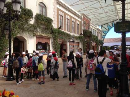 スペイン村での昼食は、エビフライカレー。昼食の後は、活動班に分かれて、4時まで自由行動です。楽しみにしていたピレネーは強風の為、運休でした。