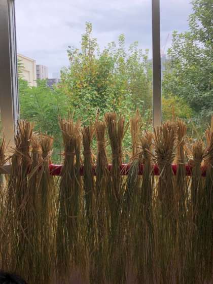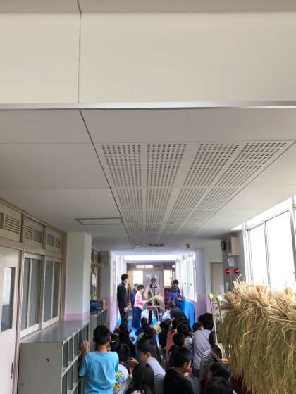 2週間前に刈った稲の脱穀作業を地域の方に教えていただき、体験しました。