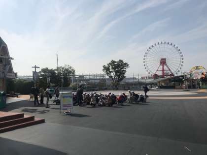 鈴鹿サーキットの遊園地、モーランドに入りました。こどもたちは、たくさんのアトラクションを楽しんでおります。奥の国際レーシング場からは、練習中のバイクの轟音が時折響いてきます。
