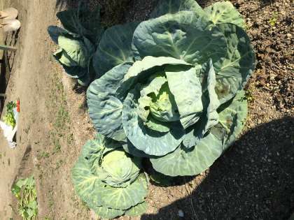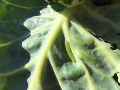 今日、学習園に行ってみるとキャベツのうらに、青虫がついていました。