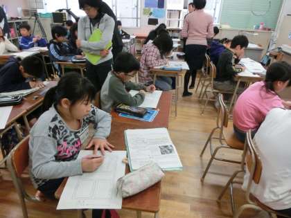 11月26日(水)5年2組で国語の授業研究がありました。単元は「大造じいさんとがん」です。筆者が伝えたいことを読み取り、本を紹介する本の帯作りを学習していきます。子どもたちは真剣に学習に取り組んでいました。
