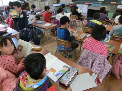 12月10日(水)今朝は読書タイムです。低学年の教室をのぞくと教室に備え付けの本を選んでじっくり読書に励んでいる子どもたちの姿があります。教室掲示もクリスマス仕様です。楽しい本をいっぱい読んでほしいです。