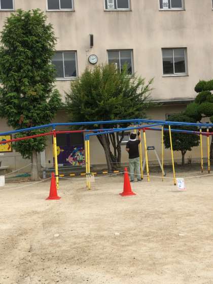 暑さ厳しいなか、管理作業員さんが、雲梯の塗装作業をしています。