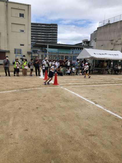 リレーの要素を取り入れた団体競技でした。おたまに紅白玉を入れて運んだり、平均台を渡ったりして楽しく身体を動かしていました。