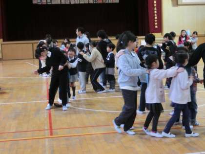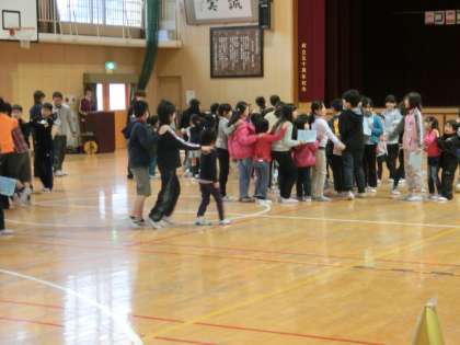 1月26日(月)来年度新1年の入学説明会がありました。保護者への説明は多目的室で行い、その間講堂で新1年生と5年生が一緒にゲームをしたり、遊んだりします。5年生はとっても優しく親切に相手をしていました。こうしてつながっていくのですね。5年生、ご苦労様でした。