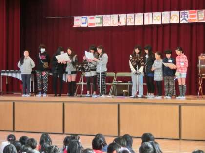 2月27日(金)今朝の集会は器楽クラブの発表会でした。歌と合奏の披露がありました。練習時間もあまりなかったのに頑張って発表していました。