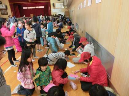 3月6日(金)2時間目に6年生を送る会をしました。6年生のこれまでの活躍や努力に対し、全校児童一人一人が感謝の気持ちを持って、楽しい集会の中で心から卒業を祝うものです。1年生と手をつないで入場してきた6年生もうれしそうでした。「ありがとうさようなら6年生」の歌の後、サイン集めのゲームをしました。
