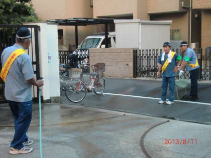 今日も猛暑の中、東三国地域の盆踊りがありました。昨日は、淀川の花火に行っていた子どもたちもやってきました。暑さを少しでもやわらげようと防犯委員のみなさんが、ホースで水をまいたり、みんなが安全に楽しめるようにと、テントの下から見守ってくださったりしました。