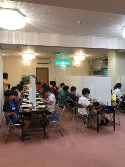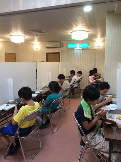 林間学習最後の朝食です。作ってくださった方へ感謝の気持ちを込めていただきました。