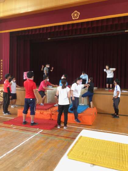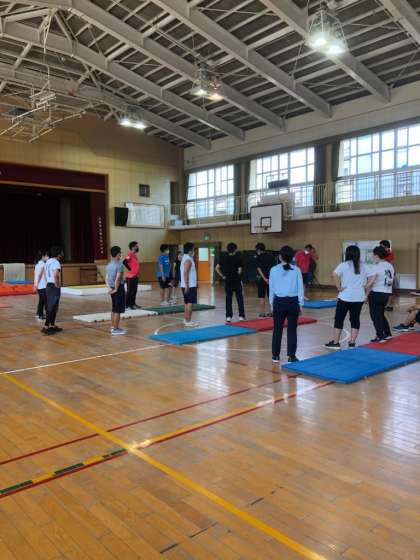 昨日は校内で器械運動の実技研修をしました。大阪市で器械運動の研究の中心的な役割を担っておられる4名の先生方を講師としてお招きし、器械運動の感覚を養う運動、主運動につながる従運動や技の習得に向けた工夫された場の作り方、補助の仕方等をご指導いただきました。