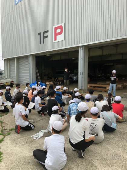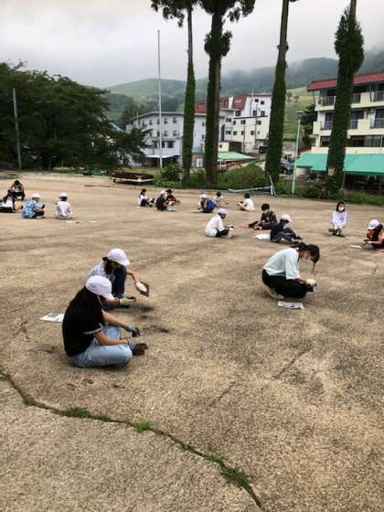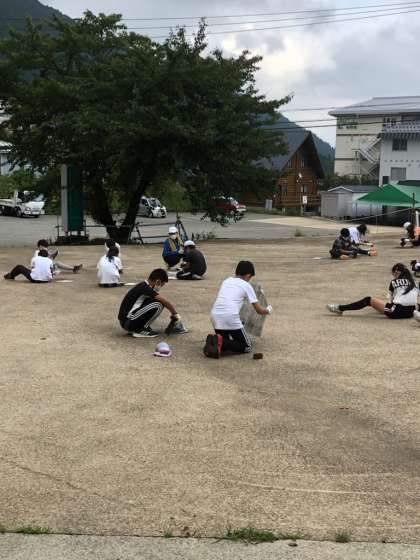 6年林間学習 焼き板磨き