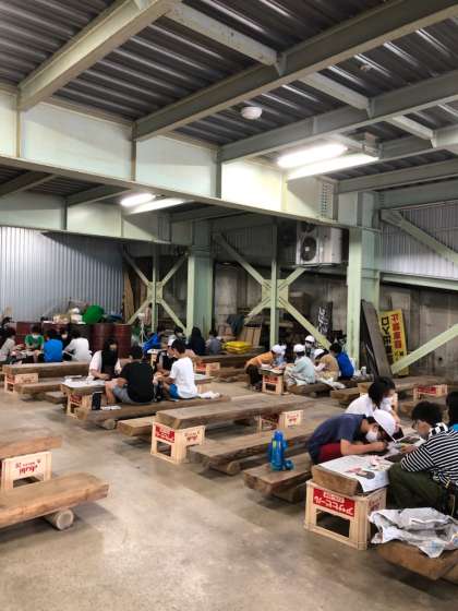 昨日丁寧に磨いた板の上に、思い思いに絵を描いていきます。