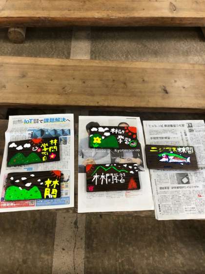 色付けした焼き板は、乾かしてから学校へ配送していただき、林間学習の活動の振り返りとして、学校で最後の作業を施した後、ご家庭へ持って帰ってもらいます。