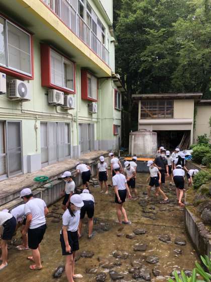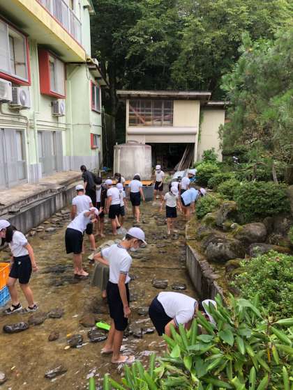 クラス毎に魚つかみをしました。魚の動きの速さに悪戦苦闘でした。