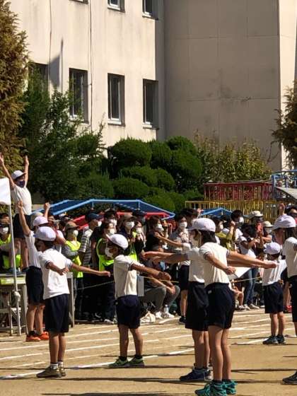 第二部の幕開けです。しっかりと準備運動をして、これからの競技と演技に臨みます。