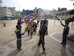 新1年生と2年生以上が、運動場で対面式を行いました。高学年の子どもたちがとてもしっかりと運営している姿を見て、頼もしく思いました。
