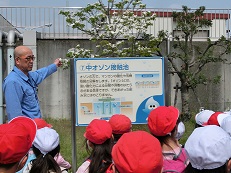 はじめに、大会議室で担当の方からパワーポイントのスライドを使って、浄水場のしくみについて説明がありました。その後、場内を見学しました。「ぎょう集ちんでん池」を見て、だんだんと水がきれいになる様子もわかりました。