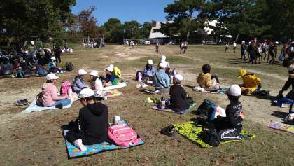 全グループがゴールした後、いよいよお弁当の時間です。大きな声を出してのおしゃべりはできませんが、みんなとても嬉しそうな顔をして食べていました。