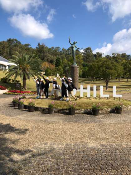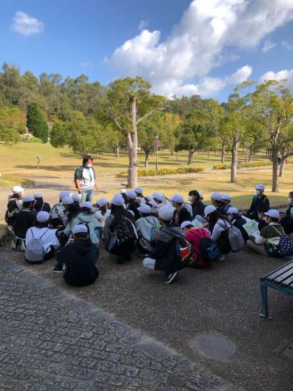 パン作りが終わって、グループ活動です。活動班で写真撮影の後、協力して思い思いの場所に見学に行きました。