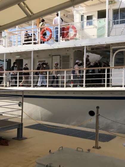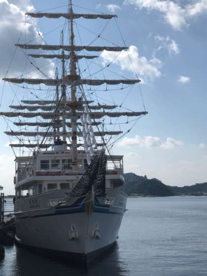 イングランドの丘で昼食をいただいた後、福良港に到着しました。今から日本丸に乗船して、うずしおクルーズです。