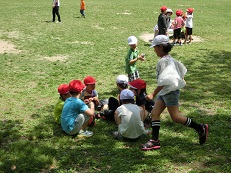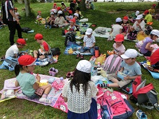 しっかり遊んだ後は、いよいよお弁当の時間です。お弁当を見せ合ったり、早くもお菓子を取り出したりする子どももいました。1・2年生が仲良くお弁当を食べている様子は、とても可愛いかったです。