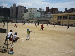 高学年チームでは、ファインプレーもたくさんあり、大きな歓声があがっていました。低学年チームでは、ベースランニングの意味が分からず迷走している選手もいましたが、コーチから優しい打ちやすいボールを投げてもらって、ホームランを打っている子どももいました。