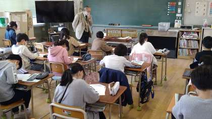 大阪府珠算教育連合会の方に来ていただき、そろばんの出前授業をしていただきました。初めて「そろばん」に触れる児童が多く、始めは使い方に戸惑う様子も見られましたが、次第に「やり方分かった!」「こうやったら早く計算できるんか」と、そろばんを使った計算に慣れることができたようでした。