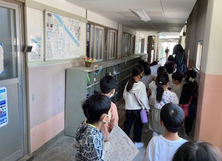 2時間目と3時間目に、1年生と2年生が学校たんけんをしました。