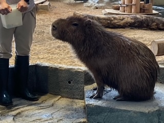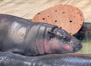 ニフレルには、水の中の生き物だけでなく、陸の動物や鳥もいました。産まれて間もないカバの赤ちゃんもいました。中央の写真がカバの赤ちゃんです。