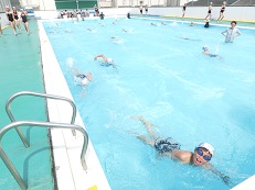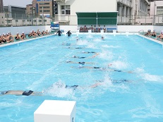 それから、驚いたのはプールサイドの台の上にきれいに並べられた「バスタオル」です。低学年や中学年とは明らかに異なる光景でした。感動しました。