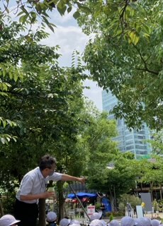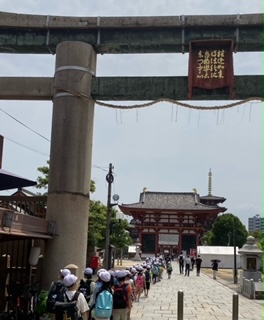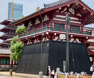 四天王寺で休憩し、予定通り11時過ぎに、てんしばに到着。ハルカスが間近にそびえています。