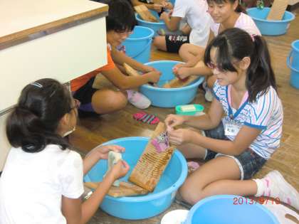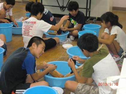 9月10日(火)今日の6年生の家庭科は洗濯です。洗濯といっても洗濯板を使って固形石鹸を使ってたらいを使って洗濯です。用意した靴下のかかとやつま先など重点的にごしごしこするとたらいの水が黒くなります。そのあとすすいで干して後片付けをします。洗濯機に放り込めばきれいになる時代に何とも素敵な実習です。機械にたよらず自分できれいにするのは大切です。日頃洗濯をしてもらってる方に感謝もできるでしょう。靴下と一緒に心の洗濯もできたようです。はい、きれいになりました。