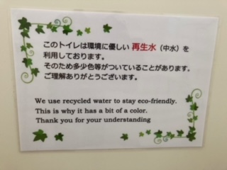 トイレでは、再生水を使っています。茶色の水に驚いていました。