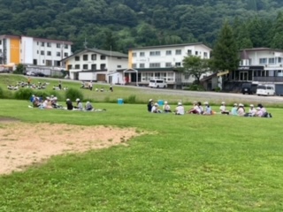 予定より早く、11時頃にハチ高原に到着しました。開舎式でお世話になる宿舎の方にあいさつしました。