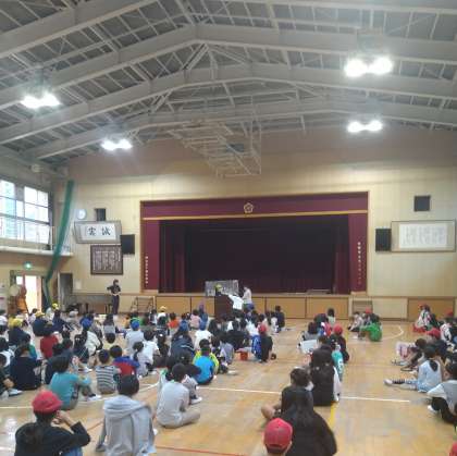 児童朝会で『夏休み作品コンテスト』の優秀作品表彰式を行いました。作品は子どもたちみんなの投票で選ばれたものです。