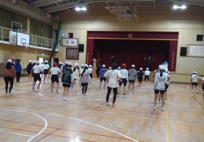 講演・質疑ののち、実技指導をしていただきました。子どもたちもダンスの基本技に夢中で取り組み、最後は全員で曲に合わせてダンスできました。