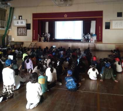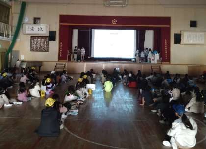 各学年1組のたてわり班が集まり、図書委員会の子たちが絵本の読み聞かせをしてくれました。『もりの100かいだてのいえ』を読んでくれた後に、図書館の正しい使い方についても話してくれました。木曜日は2組の読み聞かせ集会です。