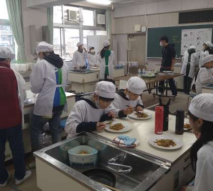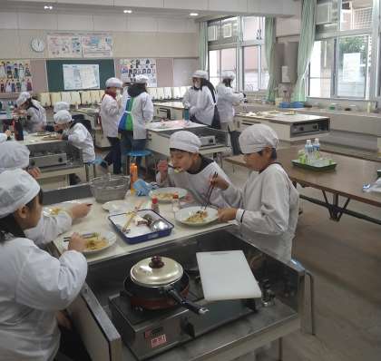 昨日に続き、今日は6ー2の調理実習でした。『ジャーマンポテト』が上手にできました。調味料の加減も良く、おいしくいただきました。