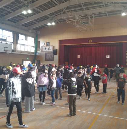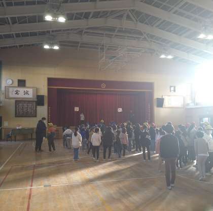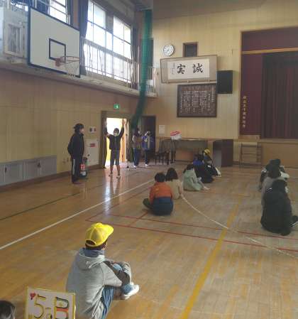 今日の朝の児童集会は、「○×クイズ お正月バージョン」でした。久しぶりの児童集会で、みんなテンションが高かったです。