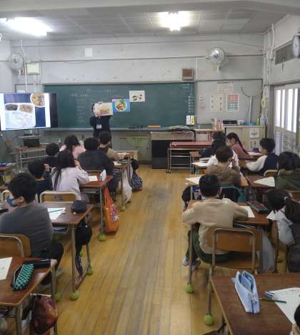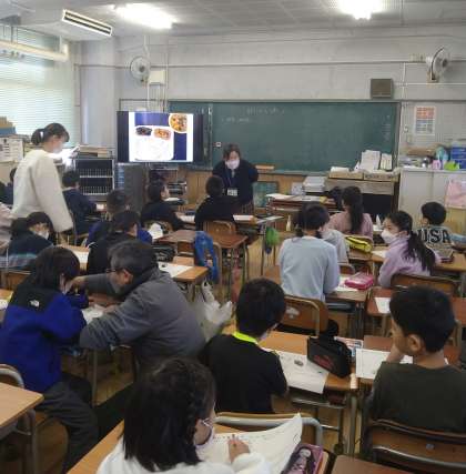2・3時間目に、新東三国小学校から栄養教諭の先生が来られ、栄養に関する学習をしていただきました。