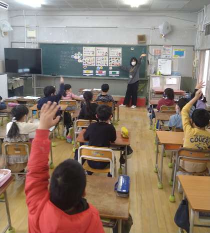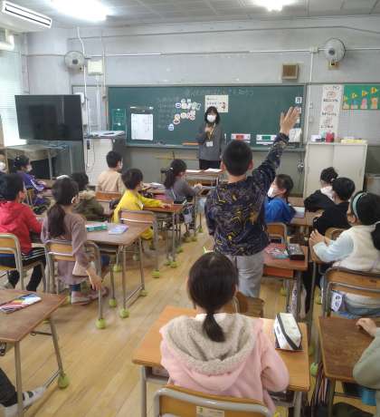 今日は2年生で、テーマは「食べ物のはたらきを知ろう」でした。給食の献立にある食べ物を3色食品群に分類し、それぞれのはたらきについて学習しました。