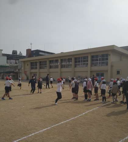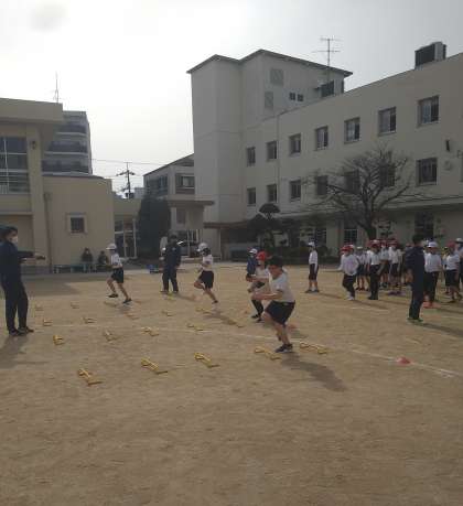 4時間目に、大阪教育大学の学生の方たちが来校くださり、体育(陸上運動)の授業をしてくれました。