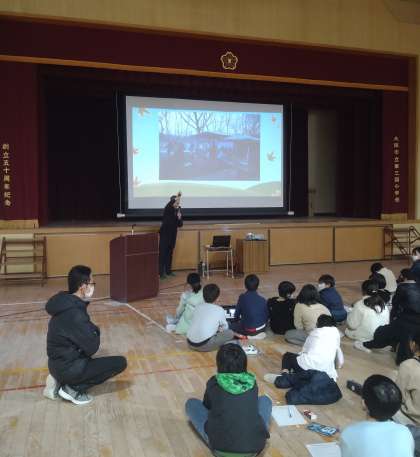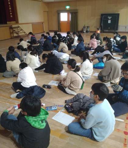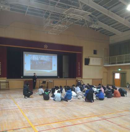 講師の先生は、東日本大震災の体験をもとに、防災の大切さを全国に広めておられ、スライドを使ってわかりやすく教えてくださりました。4年生の子たちも、熱心にメモをとっていました。最後に、地域の方からも質問がありました。「備える」ことの大切さと防災への意識が高まる「出前授業」でした。