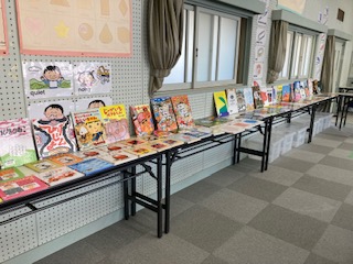 今日、明日と本校多目的室にてPTA絵本展を開催しています。絵本が200冊ほど並んでおり、自由に手に取って見ていただくことができます。