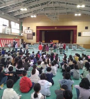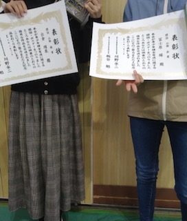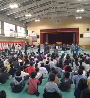 今朝は、1年生から6年生まで全員での最後の朝会を講堂で行いました。その朝会で表彰が2つありました。